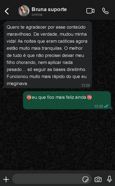 Muitas famílias relatam melhora já nas primeiras 2 a 4 noites, principalmente na tranquilidade do bebê ao dormir. Claro, cada criança tem seu tempo — mas as mudanças começam com pequenas atitudes que você aprende logo nas primeiras páginas.